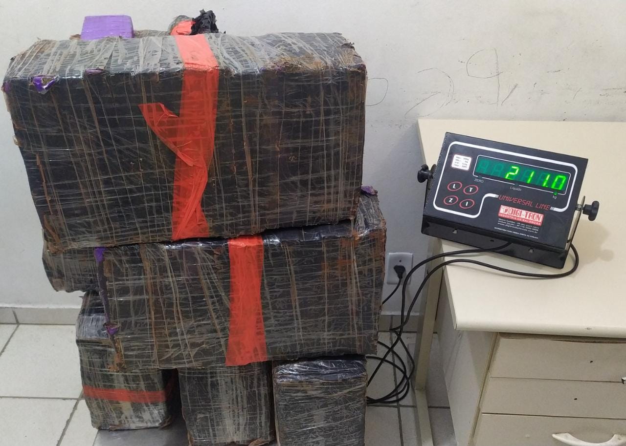 O fugitivo transportava 210 quilos de maconha, embalados em grandes pacotes.