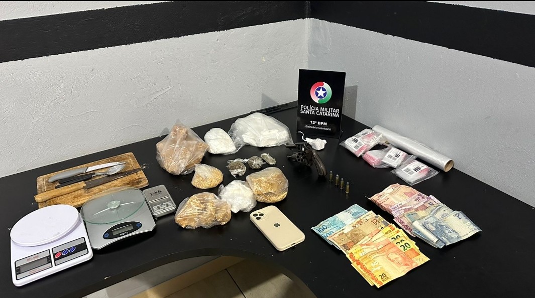 Além das substâncias ilícitas, a equipe policial também apreendeu três balanças de precisão, várias embalagens plásticas utilizadas para a comercialização das drogas, uma faca com resquícios de entorpecentes e a quantia em dinheiro de R$ 765,00. Para completar a operação, foi encontrado um revólver calibre .32 e quatro munições.