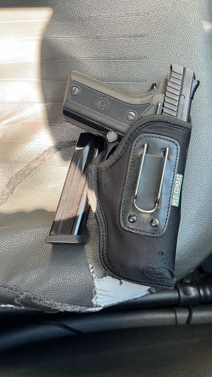 No entanto, durante a verificação do automóvel, os policiais descobriram uma pistola calibre .380 em cima do banco traseiro. Um dos homens presentes no veículo assumiu a propriedade da arma, enquanto os outros três foram liberados no local.