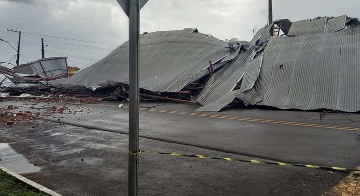 Empresa de Xanxerê fica destruída após temporal desta tarde