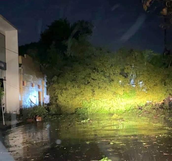Muitas árvores arrancadas pelo vento em vários locais da cidade.