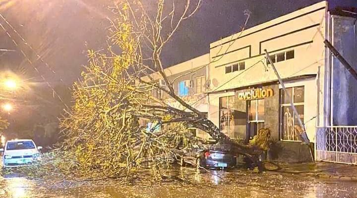 Na rua Salvador Pinheiro Machado, esquina da praça da matriz, um galho se quebrou da árvore causando avaria em veículo que estava estacionado no local. Já na rua São João, centro da cidade, houve queda de árvore, o que causou rompimento da fiação elétrica. Não houve registro de feridos.