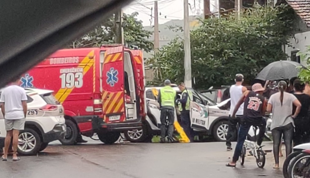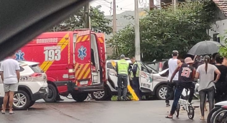 Aconteceu uma colisão entre uma viatura da Polícia Militar e um veículo de passeio, em Itapema – SC, nesta segunda-feira, dia 15 de abril, por volta das 11h21, no cruzamento entre duas ruas.