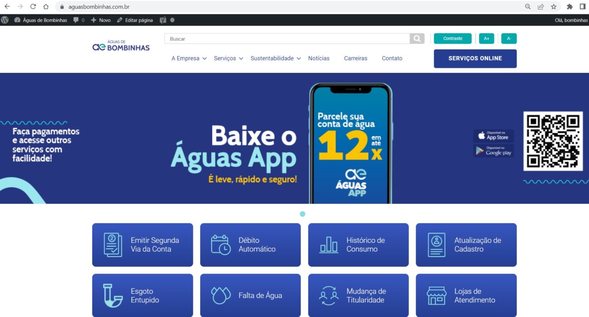 Acompanhe informações da Águas de Bombinhas no facebook https://www.facebook.com/aguasbombinhas/, no Instagram da concessionária https://www.instagram.com/aguasbombinhas/, ou também pelo site www.aguasdecamboriu.com.br
